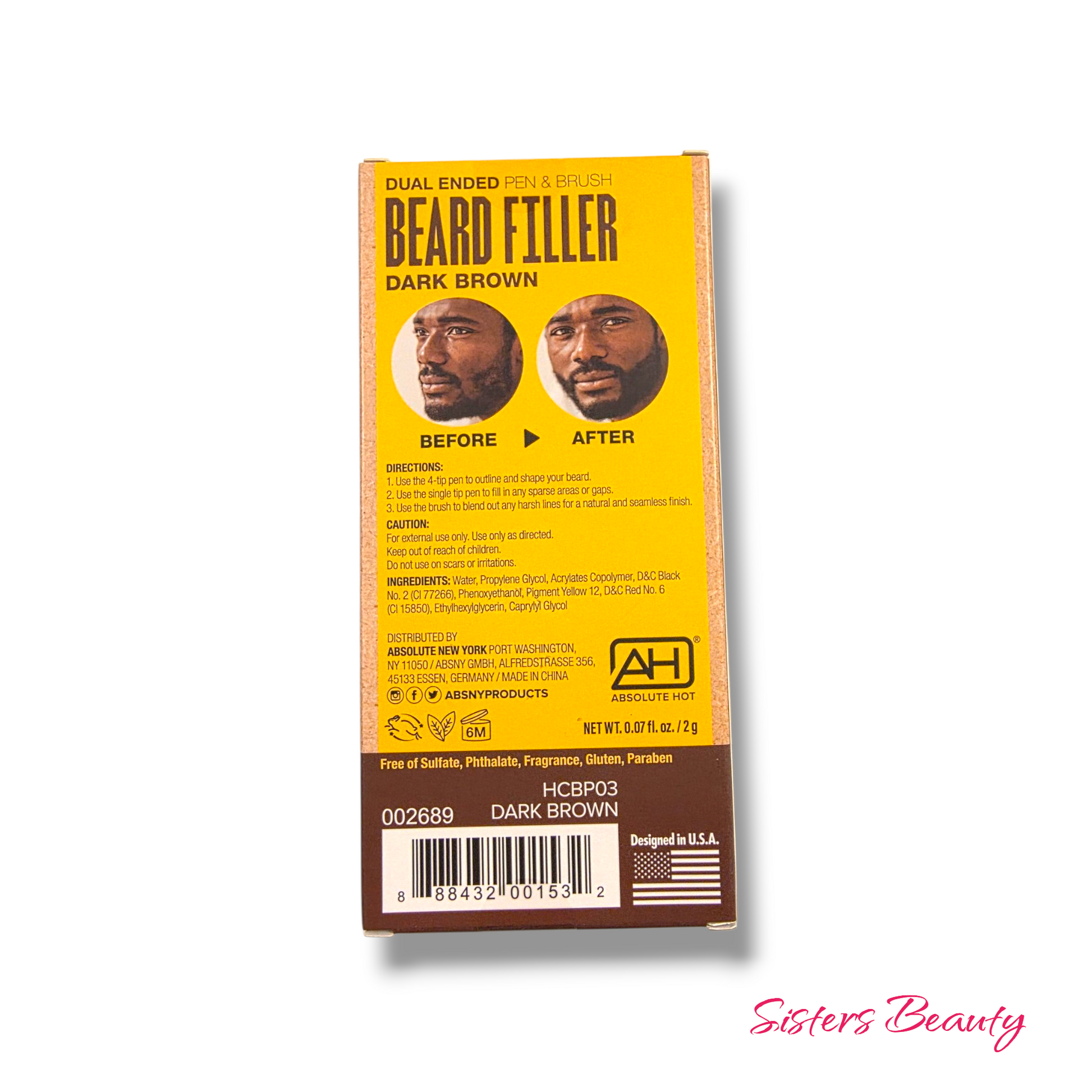 Absolute New York Dual Ended Black Beard Filler Pen & Brush